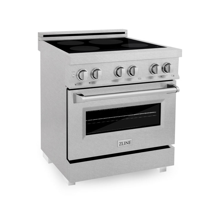 The ZLINE 30 in. 4.0 cu. ft. Induction Range with a 4 Induction Element Stove and Electric Oven in Stainless Steel with White Matte Door (RAIND-WM-30) provides a professional culinary experience by pairing unmatched performance with timeless style. Achieve ZLINE Attainable Luxury excellence with innovative features designed to enhance your kitchen’s capability.