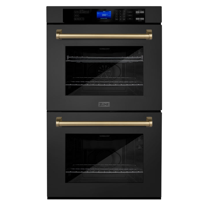 The ZLINE 30 in. Autograph Edition Electric Double Wall Oven with Self Clean and True Convection in Black Stainless Steel and Champagne Bronze Accents (AWDZ-30-BS-CB) provides a professional culinary experience by pairing unmatched performance with timeless style. Achieve ZLINE Attainable Luxury excellence with innovative features designed to enhance your kitchen’s capability.